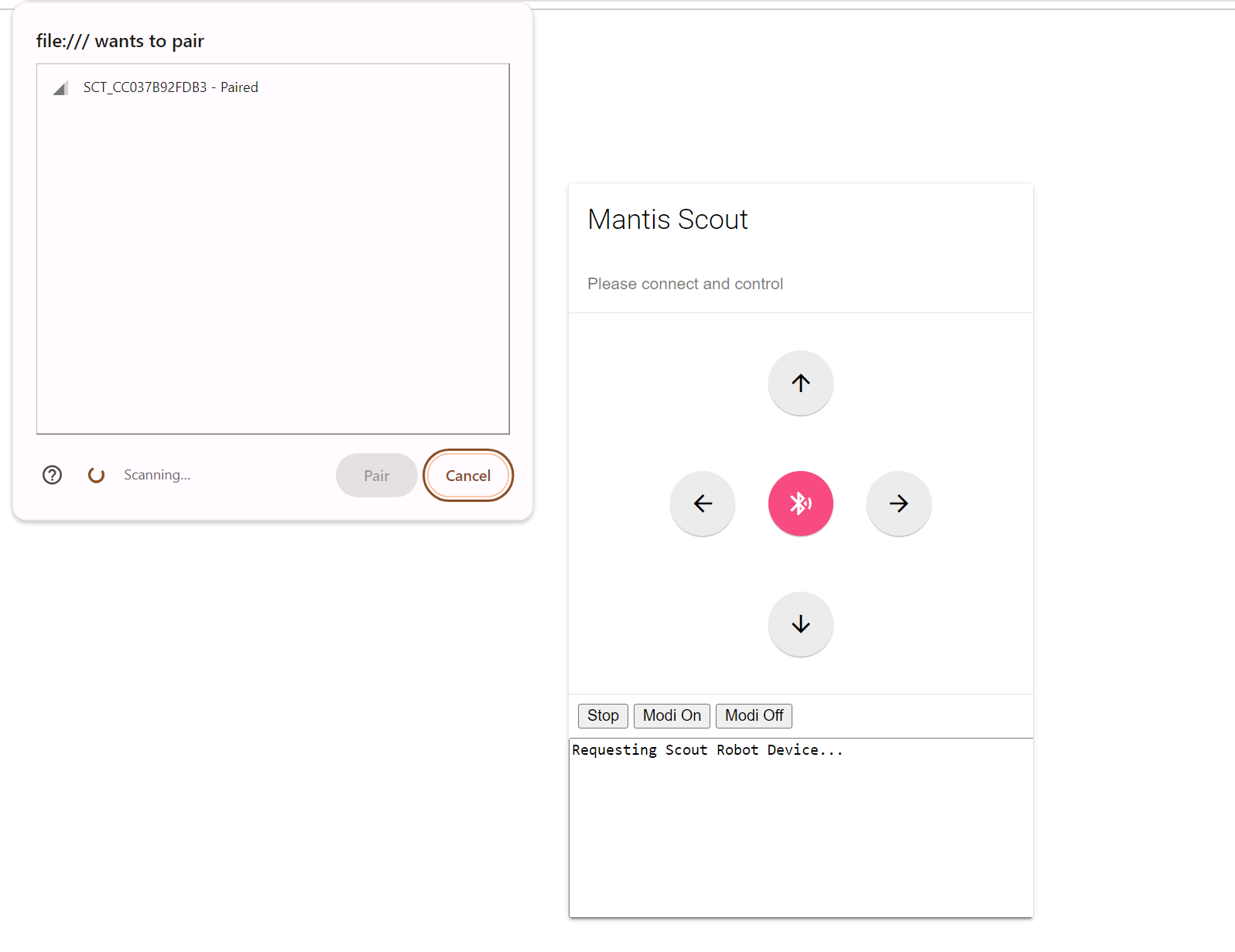 To access the program, simply follow this link https://mantiscode.azurewebsites.net/webble/sctjoystick.html