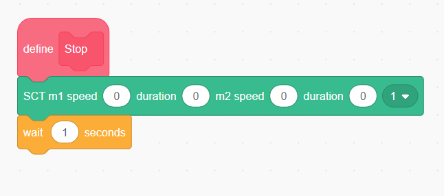 In our example we want to create a block that represents a Forward and a stop motion command for the robot, using the commands we learned earlier.