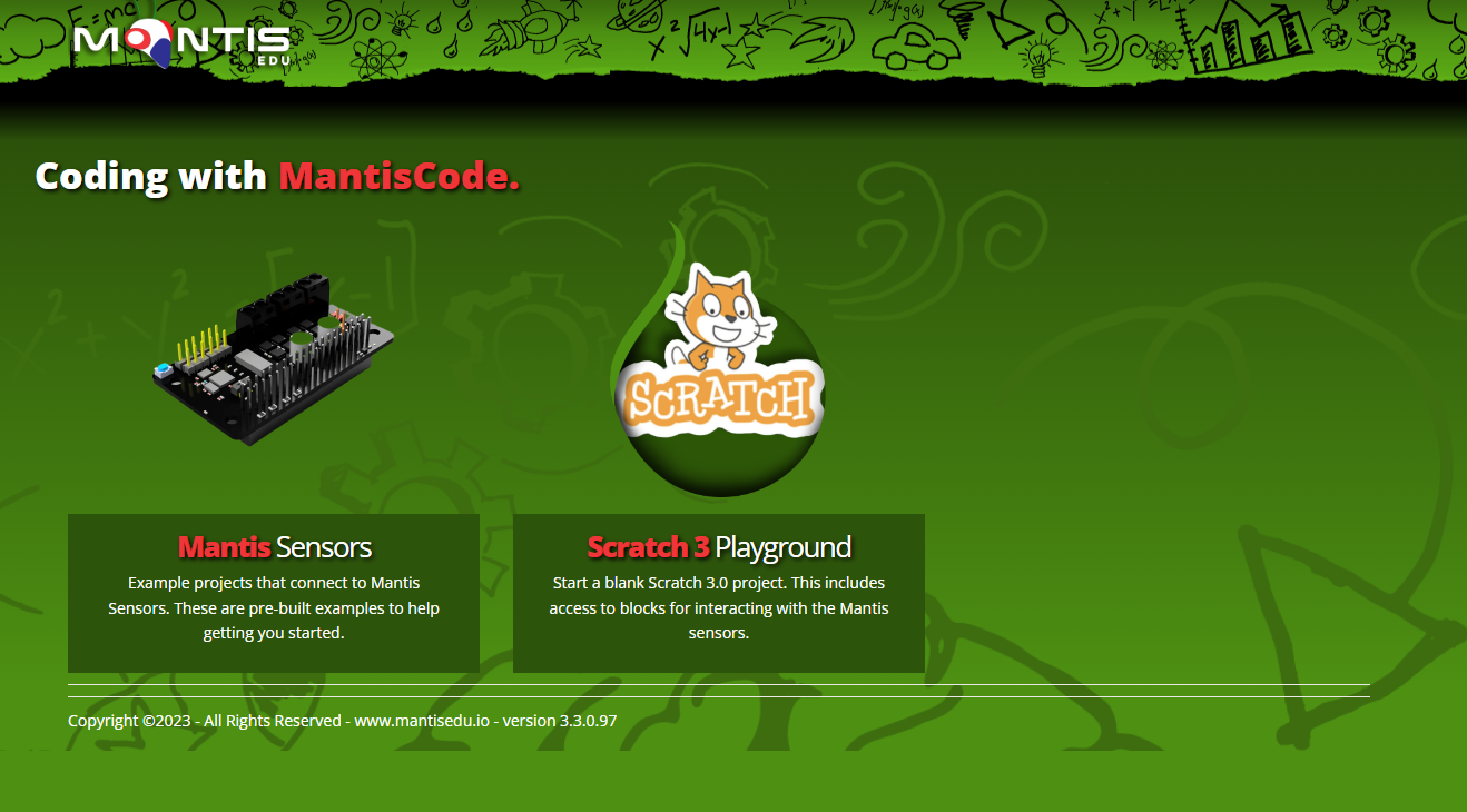 MantisCode is a browser-based software, thatโ€™s based on the Scratch programming language. With MantisCode, you can connect to MantisEDU sensors for data collection and other experiments.