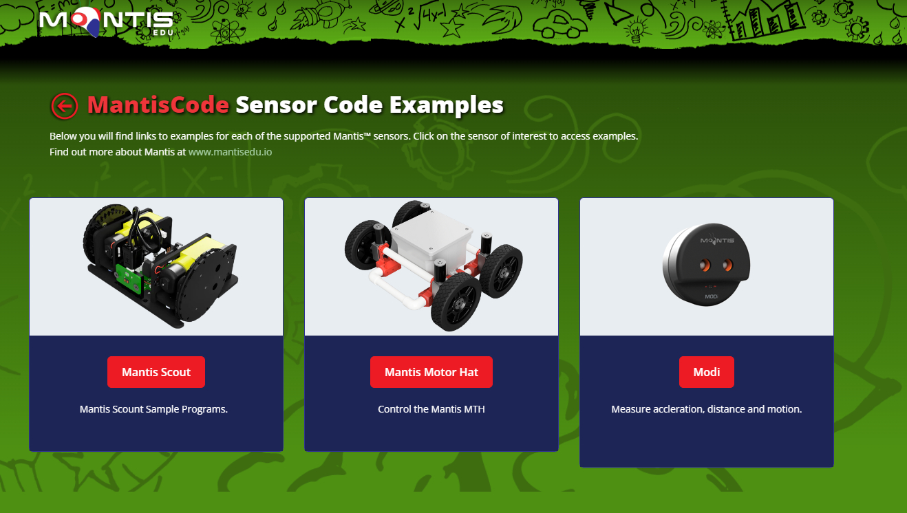To get access to the sample lessons and examples for the Scout robot, follow the Mantis Scout link.