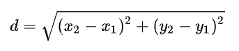 The distance between two points can be calculated by using the Distance Formula which is derived from the Pythagorean Theorem,
